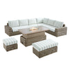 Bellagio Round Wicker Large Corner Casual Dining Set with Rising Firepit Table, Natural with Sage Stripes
