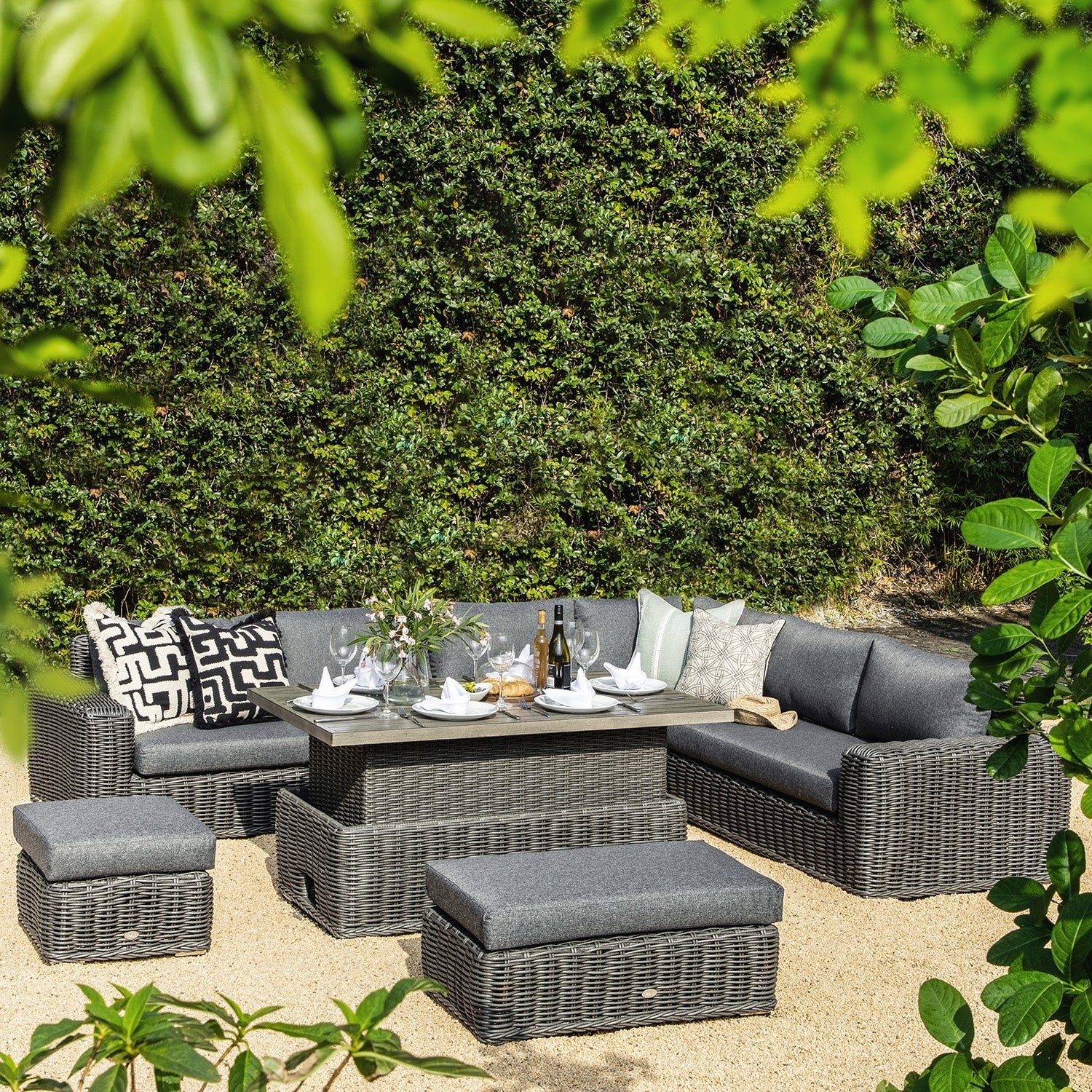 Bellagio Round Wicker Large Corner Casual Dining Set with Rising Table, Dark Grey