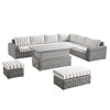 Bellagio Round Wicker Large Corner Casual Dining Set with Rising Table, Light Grey with Taupe Stripes