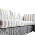 - Beautiful weather-resistant taupe striped upholstered back and seat cushions perfectly coordinate with the distressed light grey colour wicker rattan, creating a focal point in your outdoor space.
