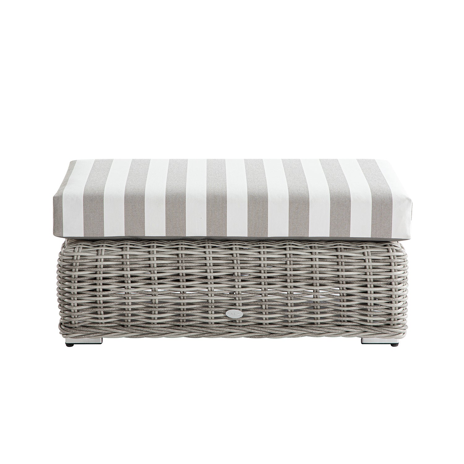 Bellagio Round Wicker Outdoor Bench, Light Grey with Taupe Stripes - daals