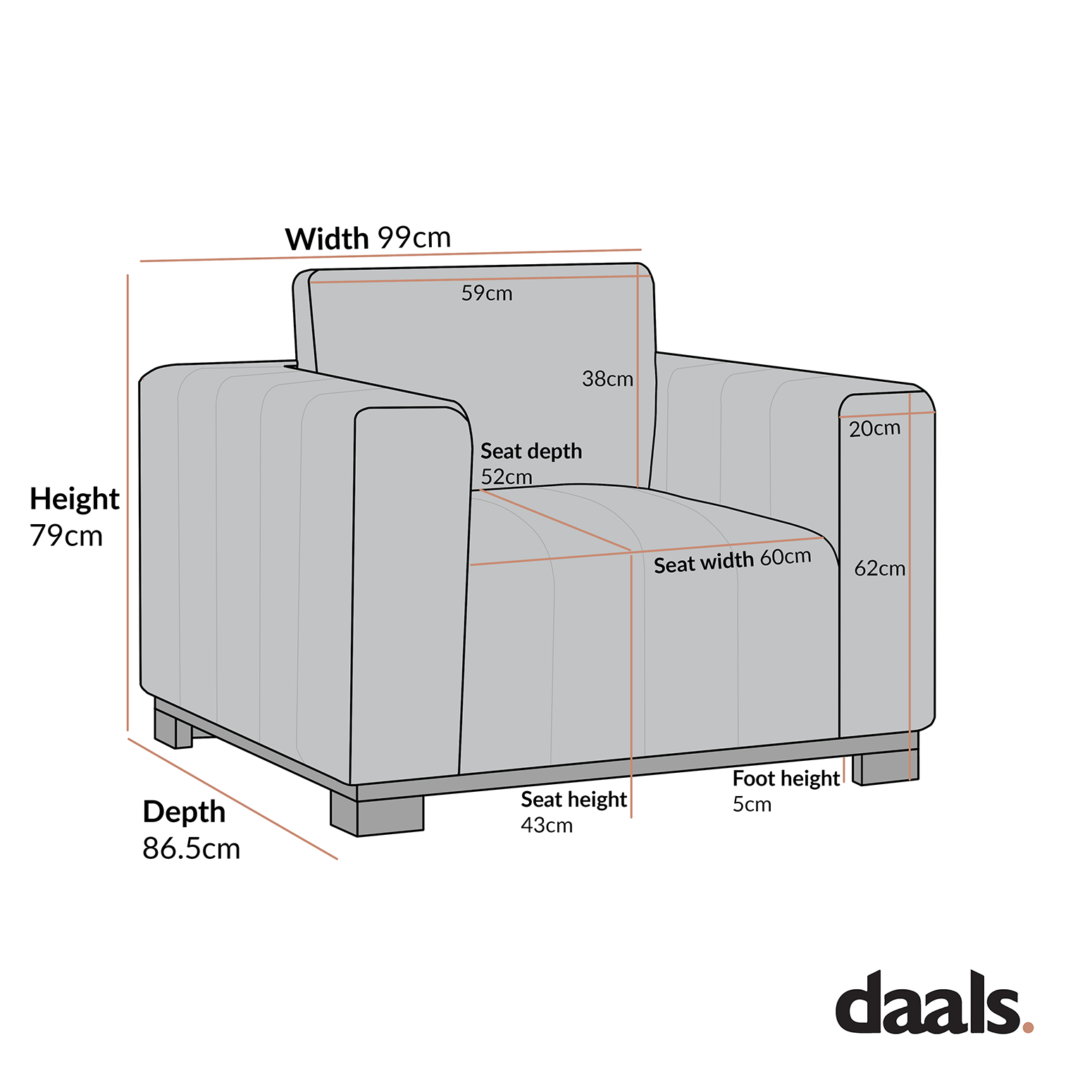 - 1-Seater sofa size: W 90 x D 87 x H 79 cm
