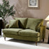 Brigette 2-Seater Olive Green Velvet Sofa with Antique Brass Castor Legs