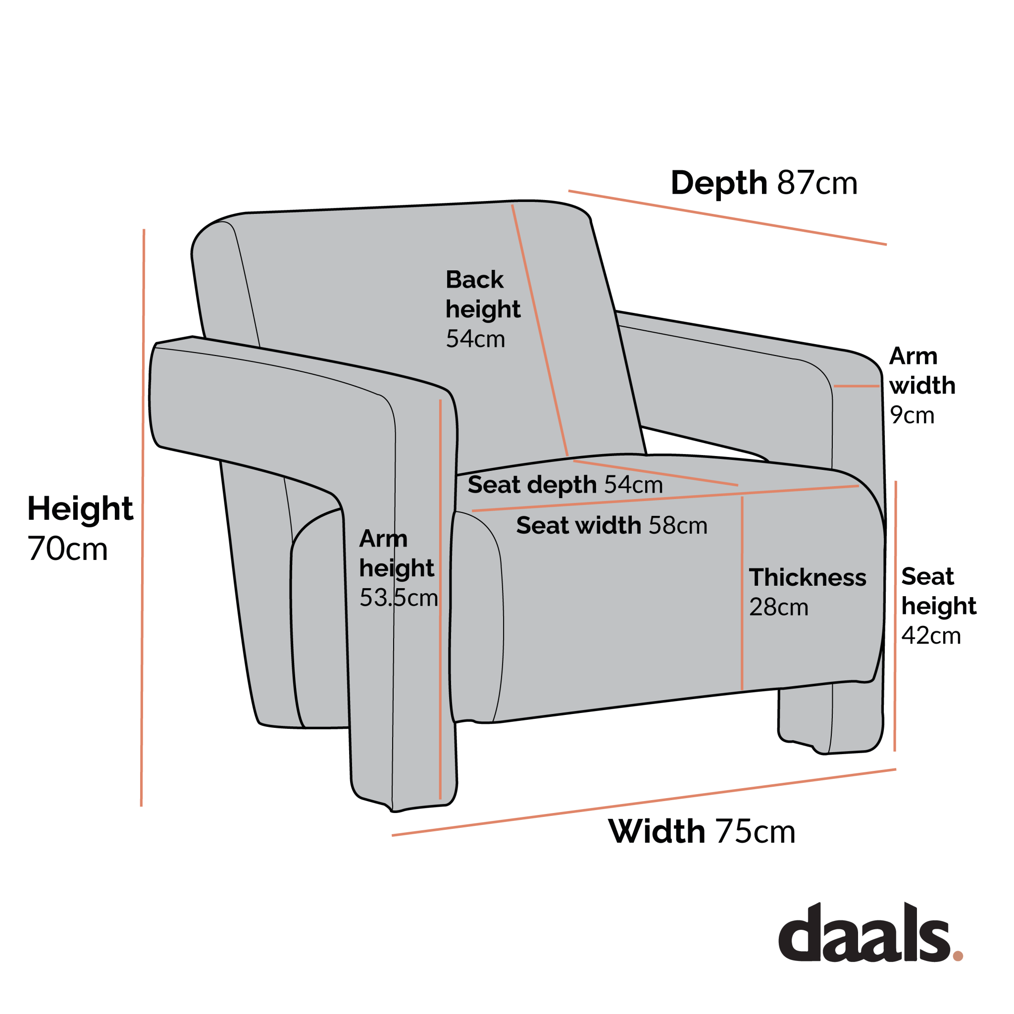- Size: : W 75 x D 87 x H 70 cm. Seat height: 42 cm.
