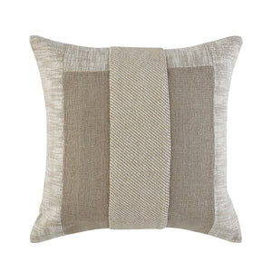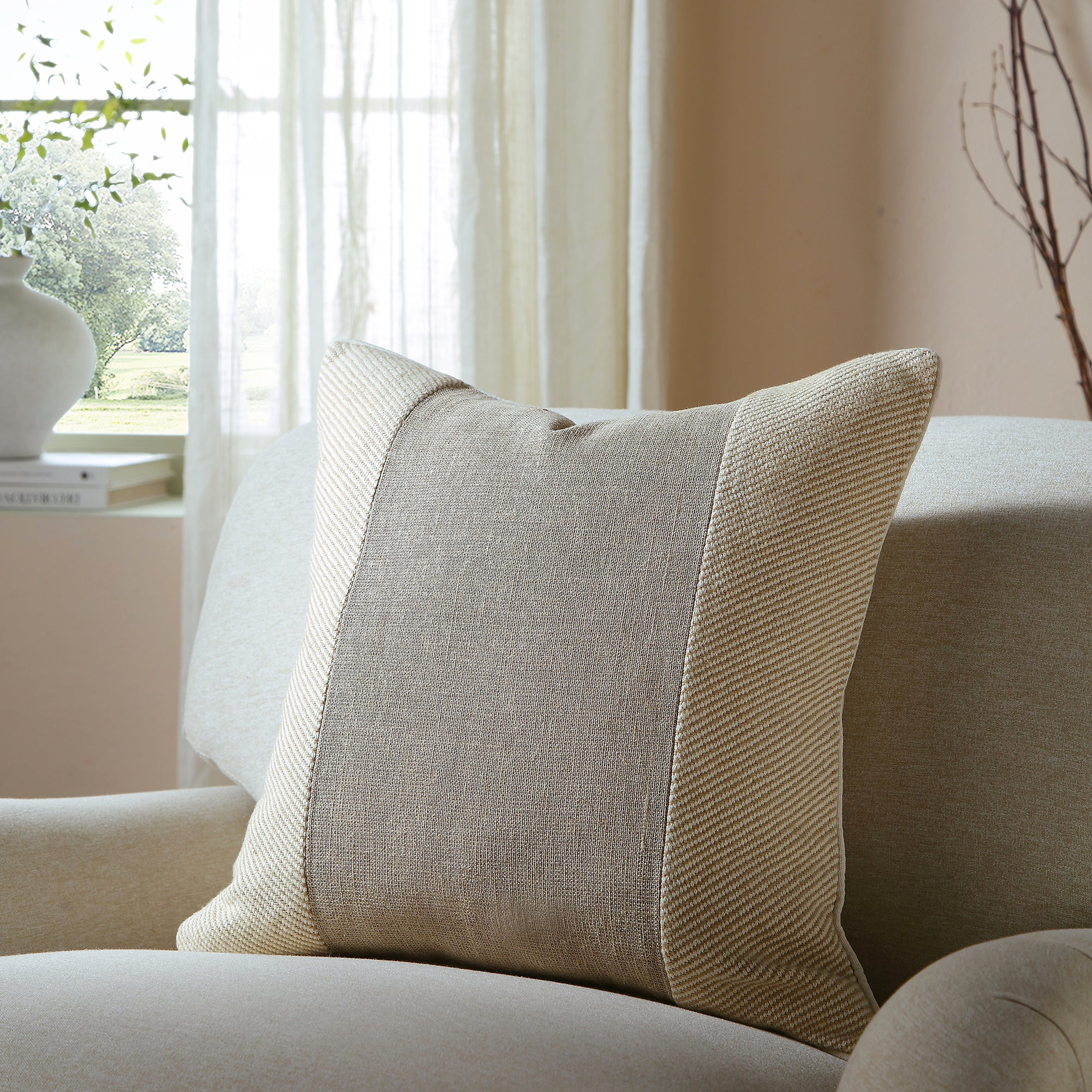 - With panels of cotton slub in natural tones of beige. This paired back cushion goes with all types of decor themes and it is easy to style with.