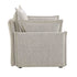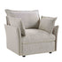 - Upholstered with chic mist grey boucle textured fabric.
