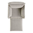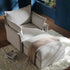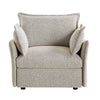 - Upholstered with chic mist grey textured boucle fabric.