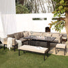 View all Calabasas- Comprising of a solid aluminium frame and sumptuous back and seat cushions for added comfort and support, our Calabasas Large Outdoor Fabric and Aluminium Corner Casual Dining Set is perfect for outdoor gatherings