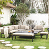 View all Calabasas- Comprising of a solid aluminium frame and sumptuous back and seat cushions for added comfort and support, our Calabasas Large Outdoor Fabric and Aluminium Corner Casual Dining Set is perfect for outdoor gatherings