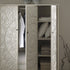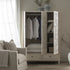 - The double doors open up to full width hanging space, and behind the third door there are 4 layers of shelves to store folded clothes.