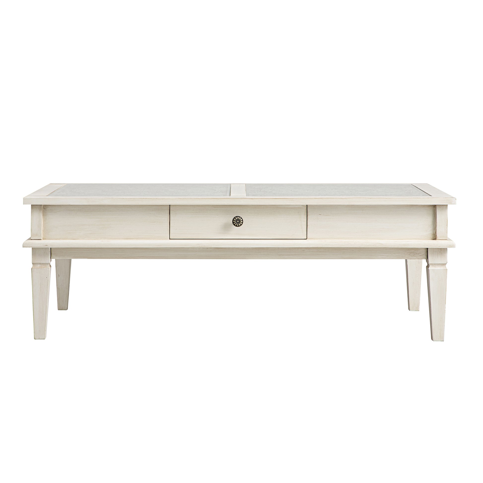 - With its whitewashed finish wooden surfaces and floral pattern carved table top, our Chantilly coffee table will be a practical and beautiful focal point in the living room.