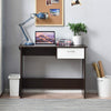 - A simple, sleek design walnut colour computer desk with a contrasting white drawer with runners for storage.