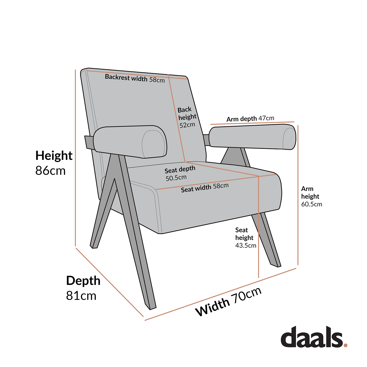- Size: W 70.0 x D 81.0 x H 86.0 cm. Seat height: 43.5 cm.