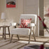 - Complete the look: Pictured with the Chinnor Beige Boucle Weathered Oak Frame Accent Chair, is our Noa Linear Cream Handwoven Wool Rug, and Ikat Collection Fuchsia Hand Embroidered Cushion.