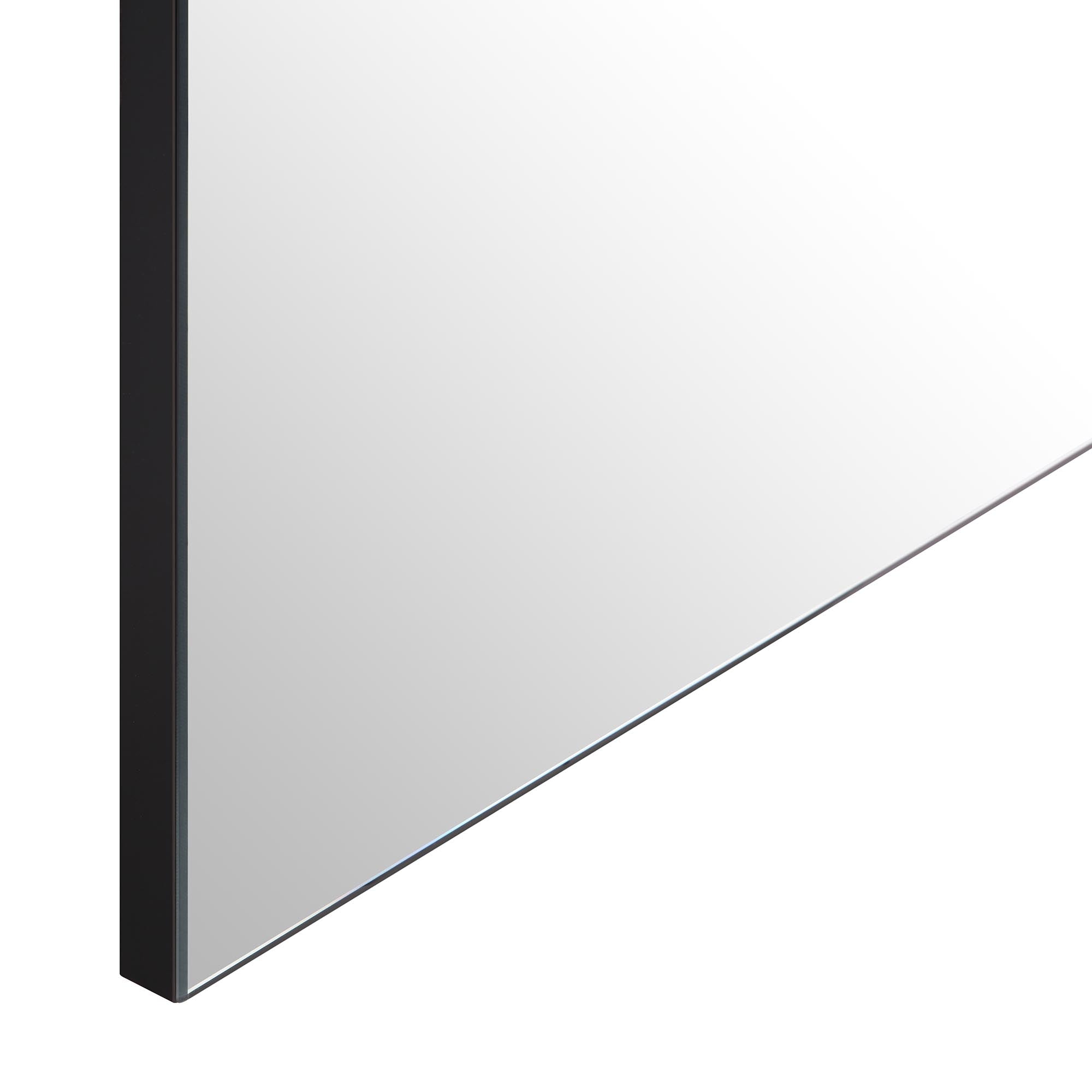 - The mirror glass is secured onto black wood backing. Without a frame, it blends in any interiors with understated elegance.