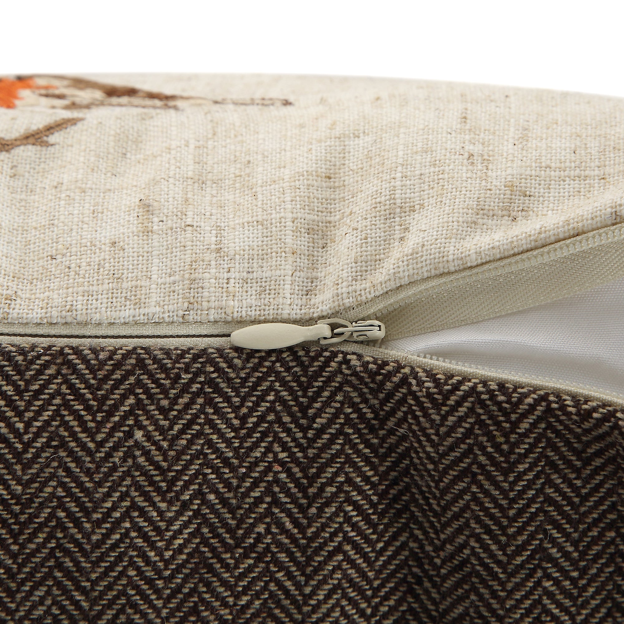 - The linen blend base has been intricately embroidered, the edges have been finished off with a grey pompom trim and the contrast of the brown herringbone reverse really adds to the country feel.