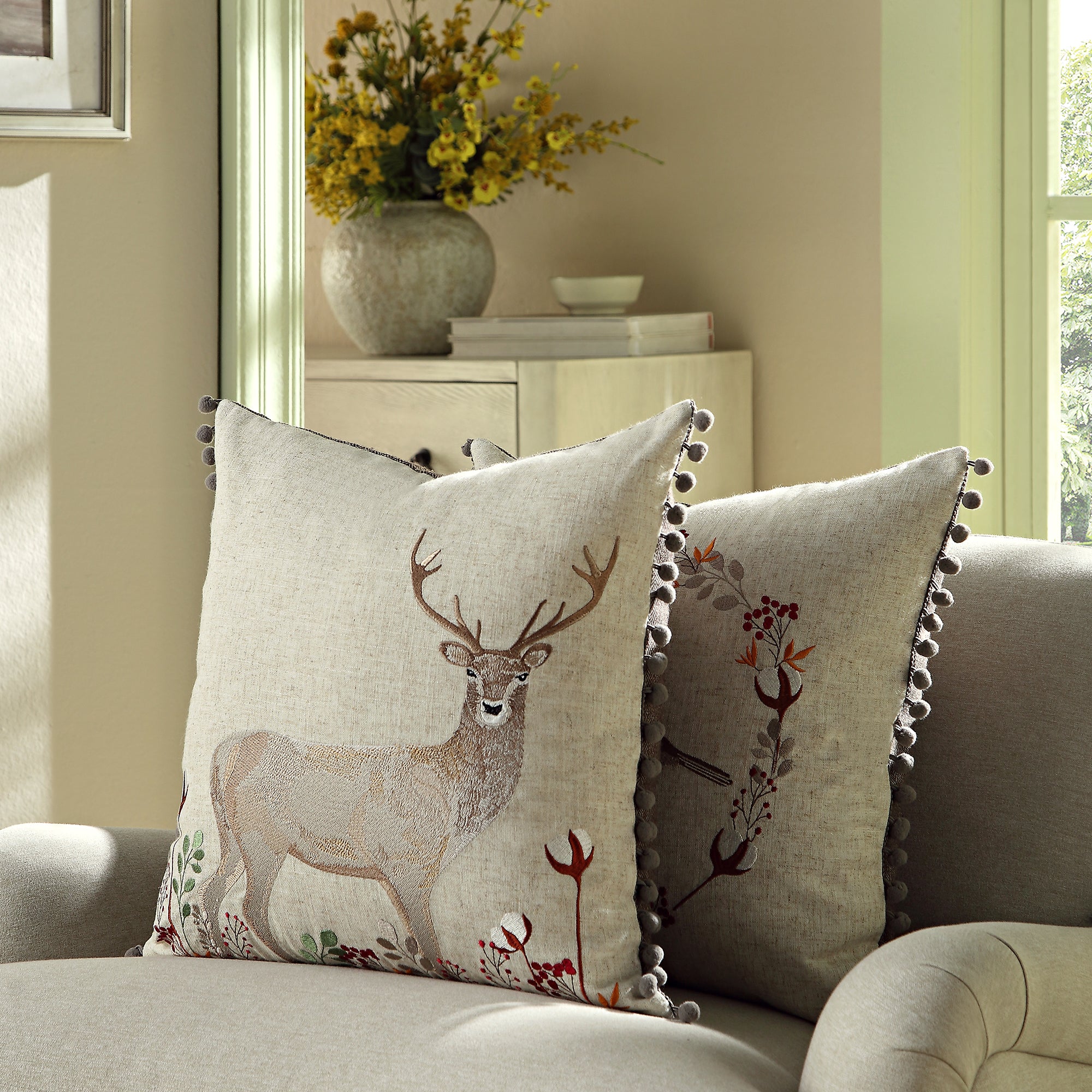 - We just love the outstanding attention to detail of this cushion, featuring a strikingly beautiful stag amongst country foliage.