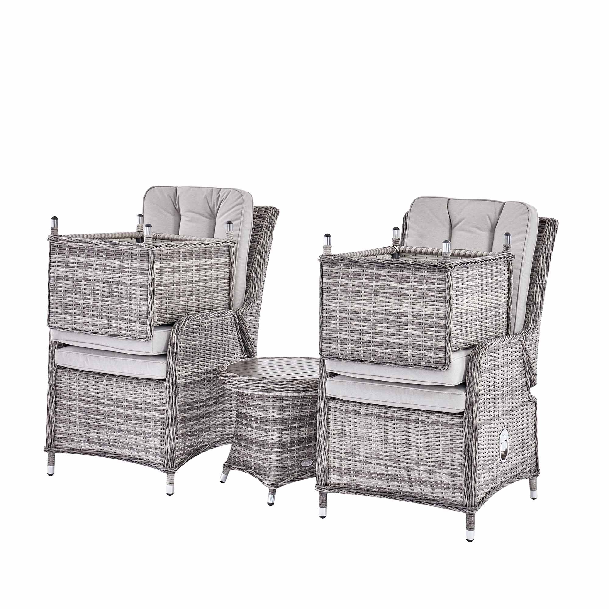 - Hampshire 2-Seater Round Wicker Reclining Bistro Set with Stools, Light Grey