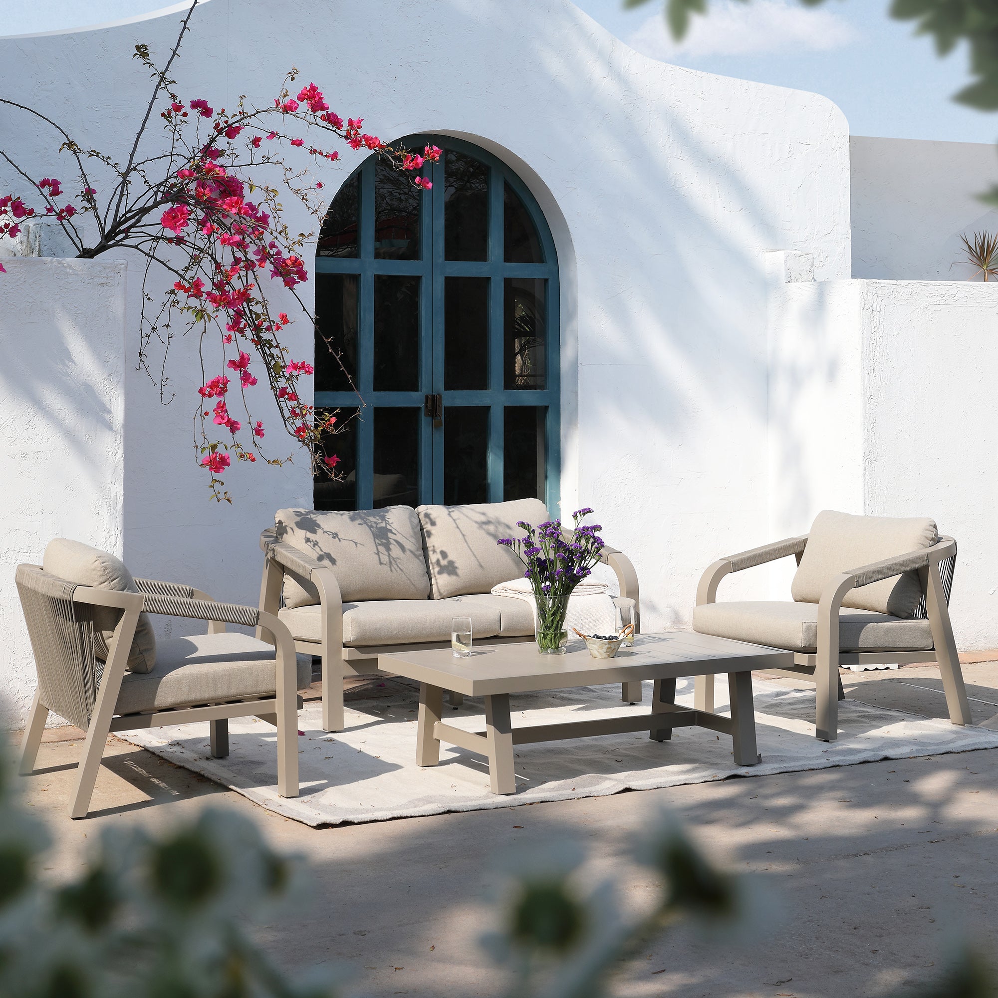 - Manresa Rope 5-Seater Firepit Sofa Set, Taupe and Beige