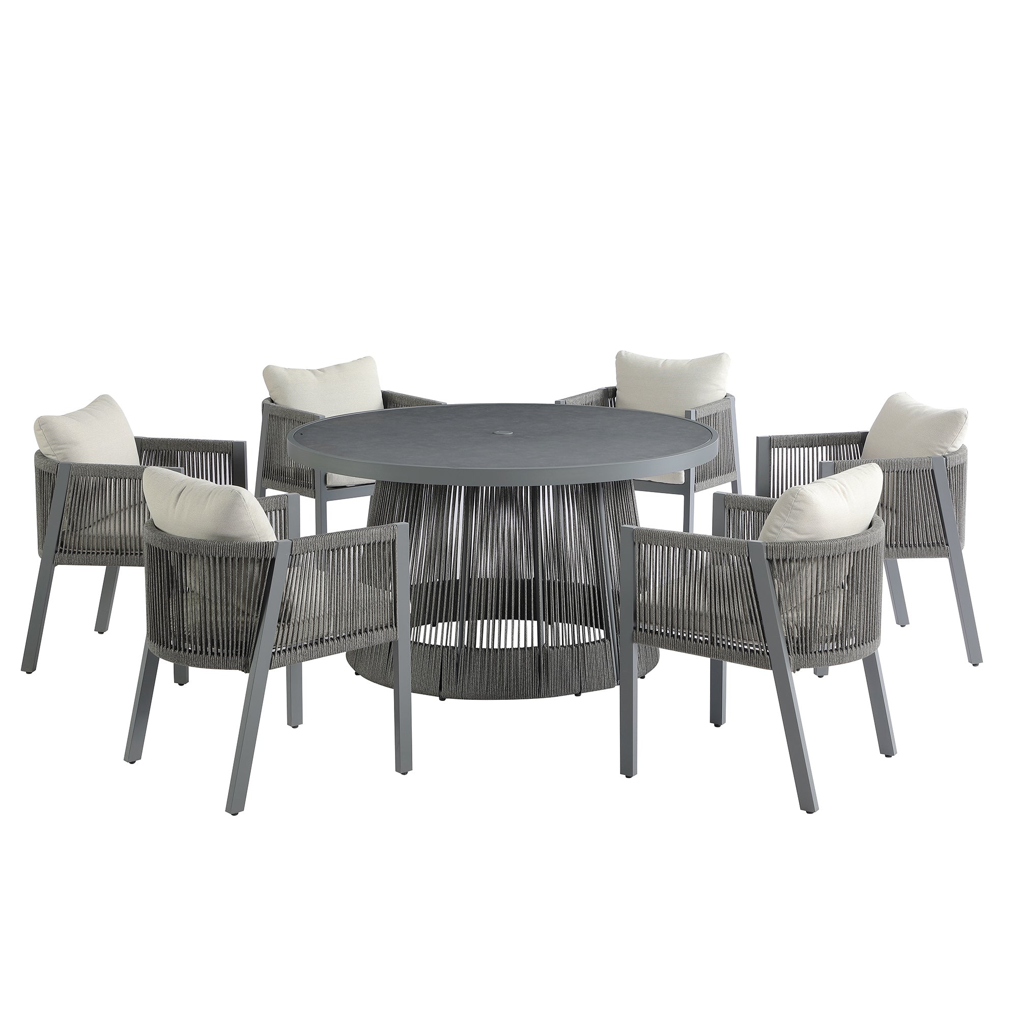 - Pedra Rope and Aluminium Outdoor 6-Seater Round Dining Set, Grey