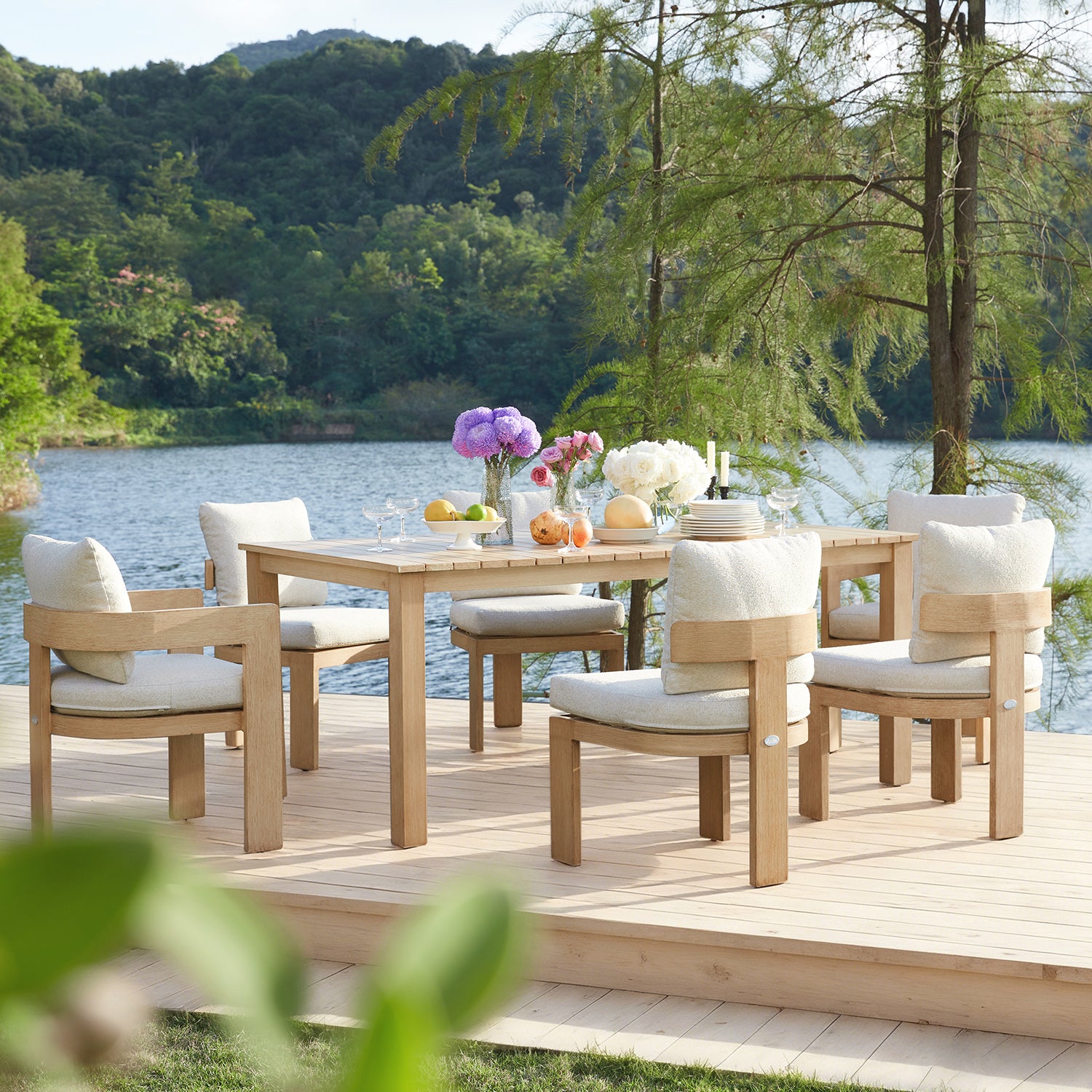 - Stanford Outdoor 6-Seater Rectangular Dining Set, Natural with Beige Boucle Fabric