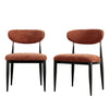 - The softly curved backrest and generously padded seat are upholstered in rust-toned chenille, offering a plush, tactile surface with subtle depth and warmth that brings character to the dining space without overwhelming it.