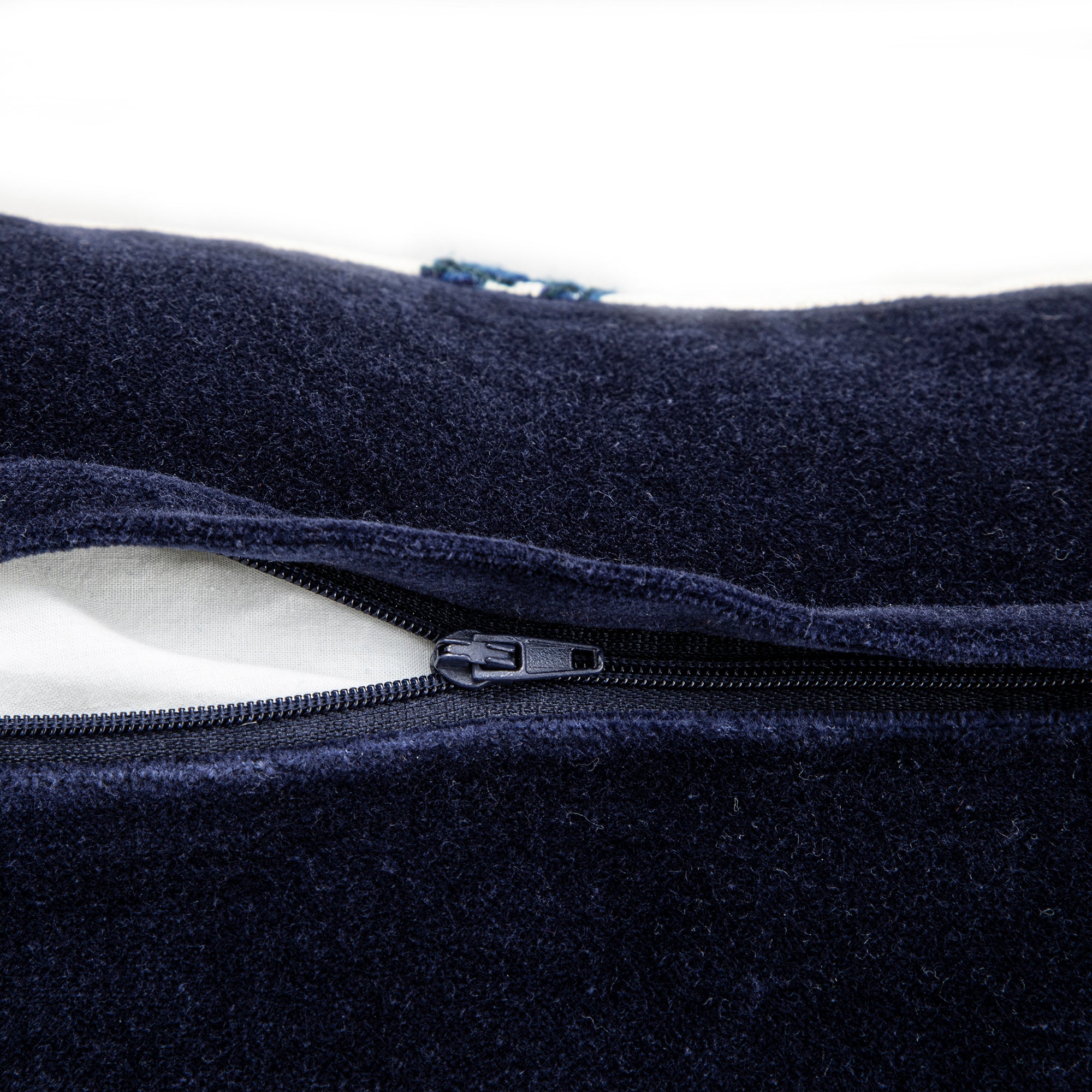 - Complete the look: Pictured with the Damask Sapphire Wool Embroidered Cushion is our Henrietta Spiced Honey Chenille 2-Seater Sofa and Indra Light Grey Handwoven Wool Rug.