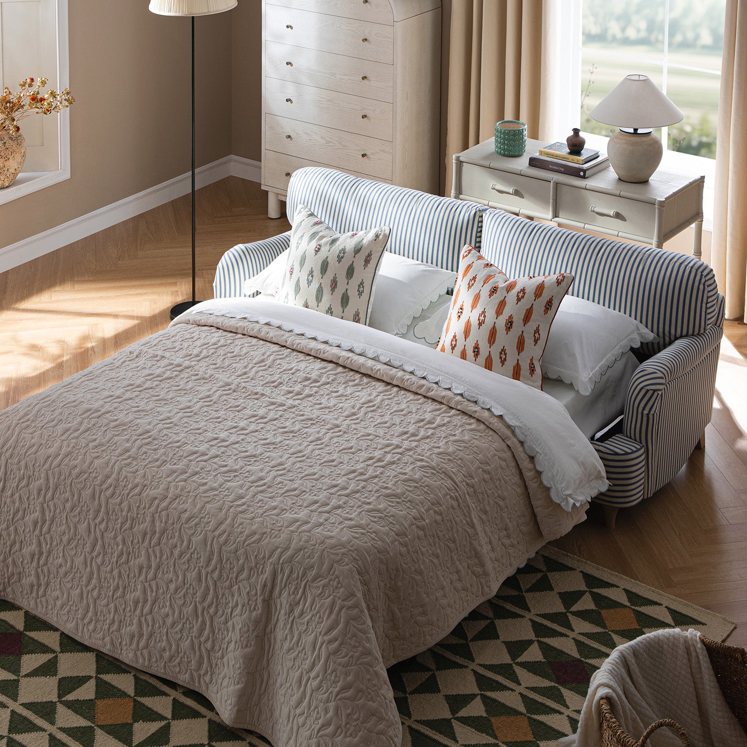 Daphnis Blue Striped Linen Blend Sofa Bed, Large 3-Seater