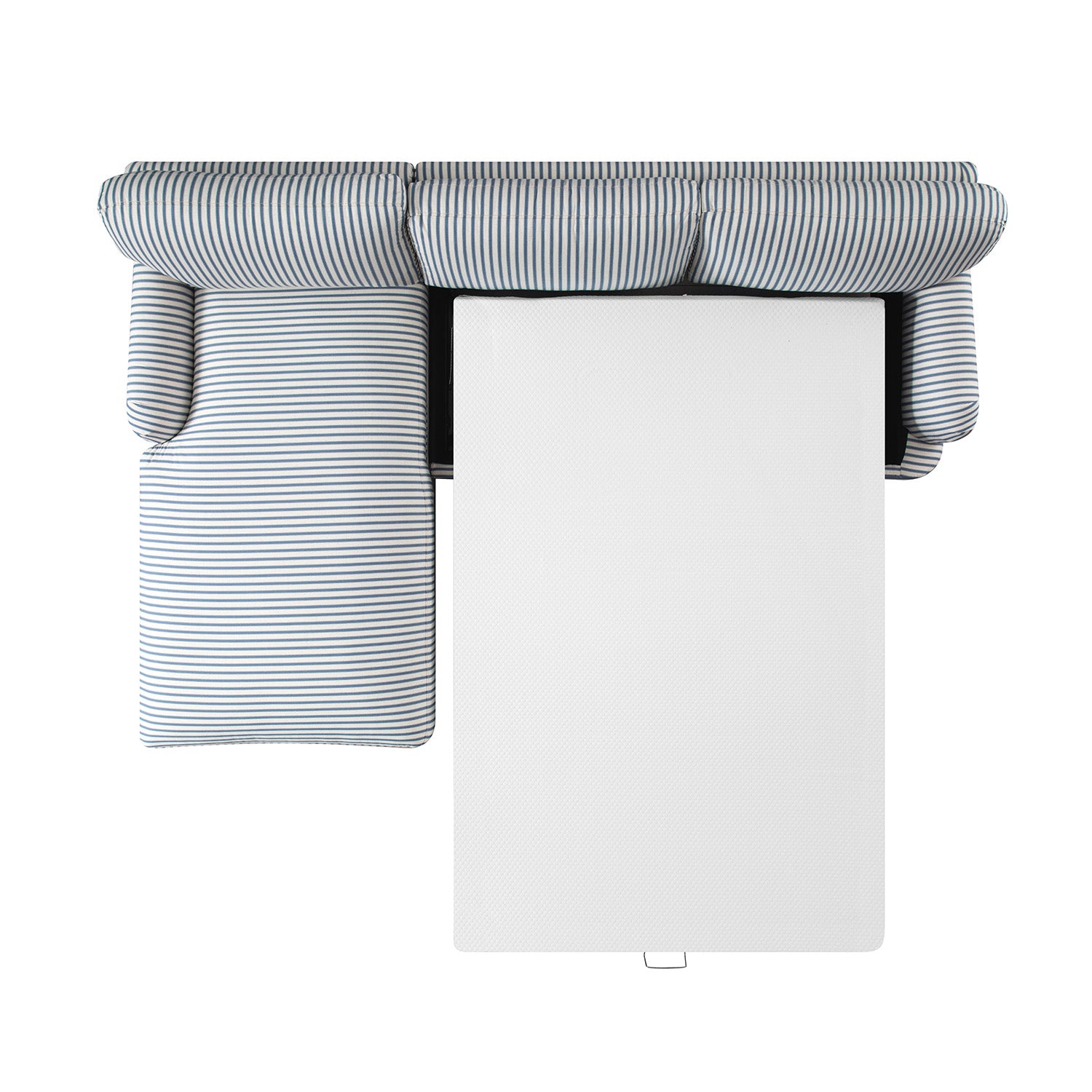 - Generous in size and designed for modern living, the Daphnis Grande Chaise Sofa Bed in blue striped linen-blend fabric offers both comfort and versatility.
