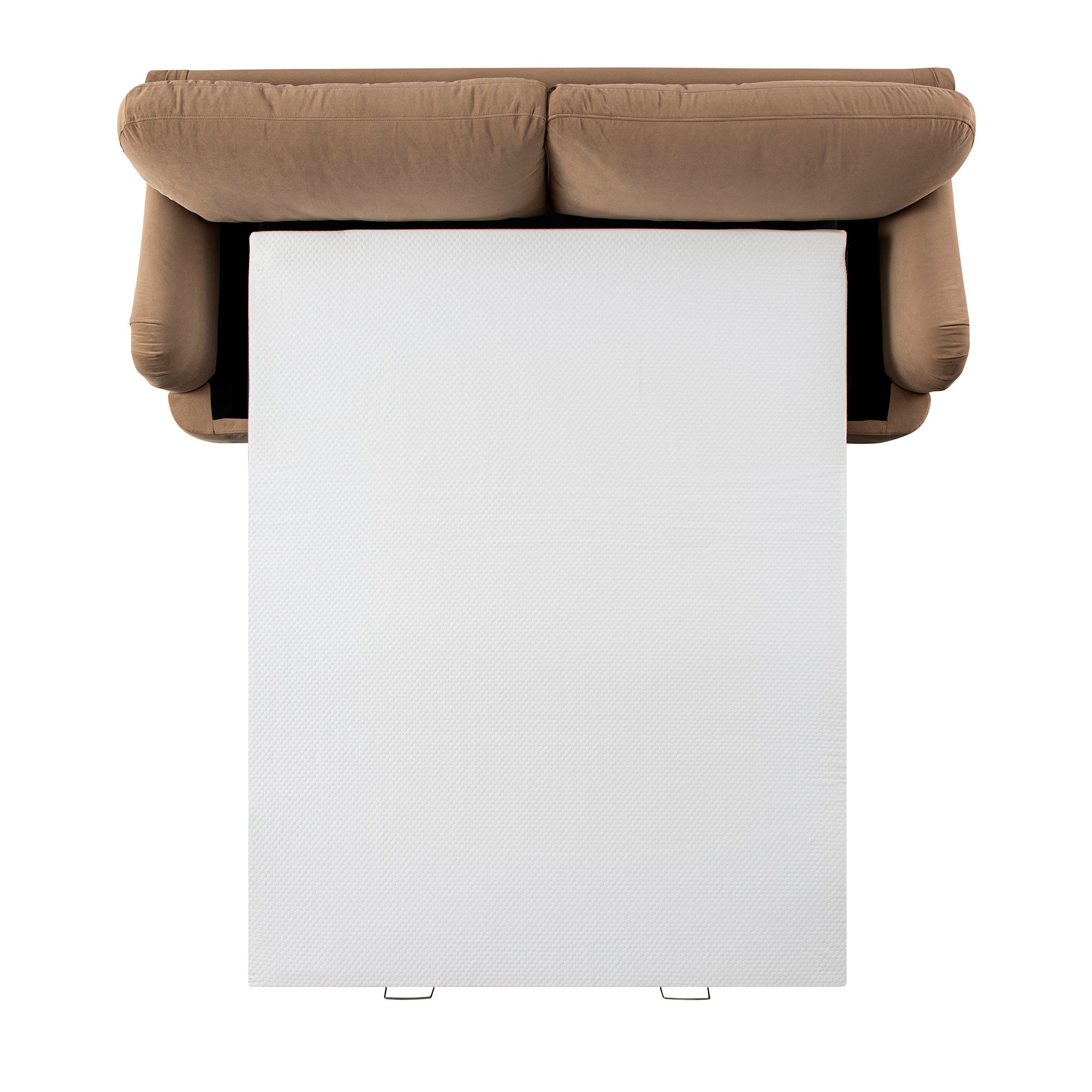 - Tri-fold flip sofa bed mechanism converts the sofa into a bed with spring coil and foam filled mattress as wide as a king sized bed.