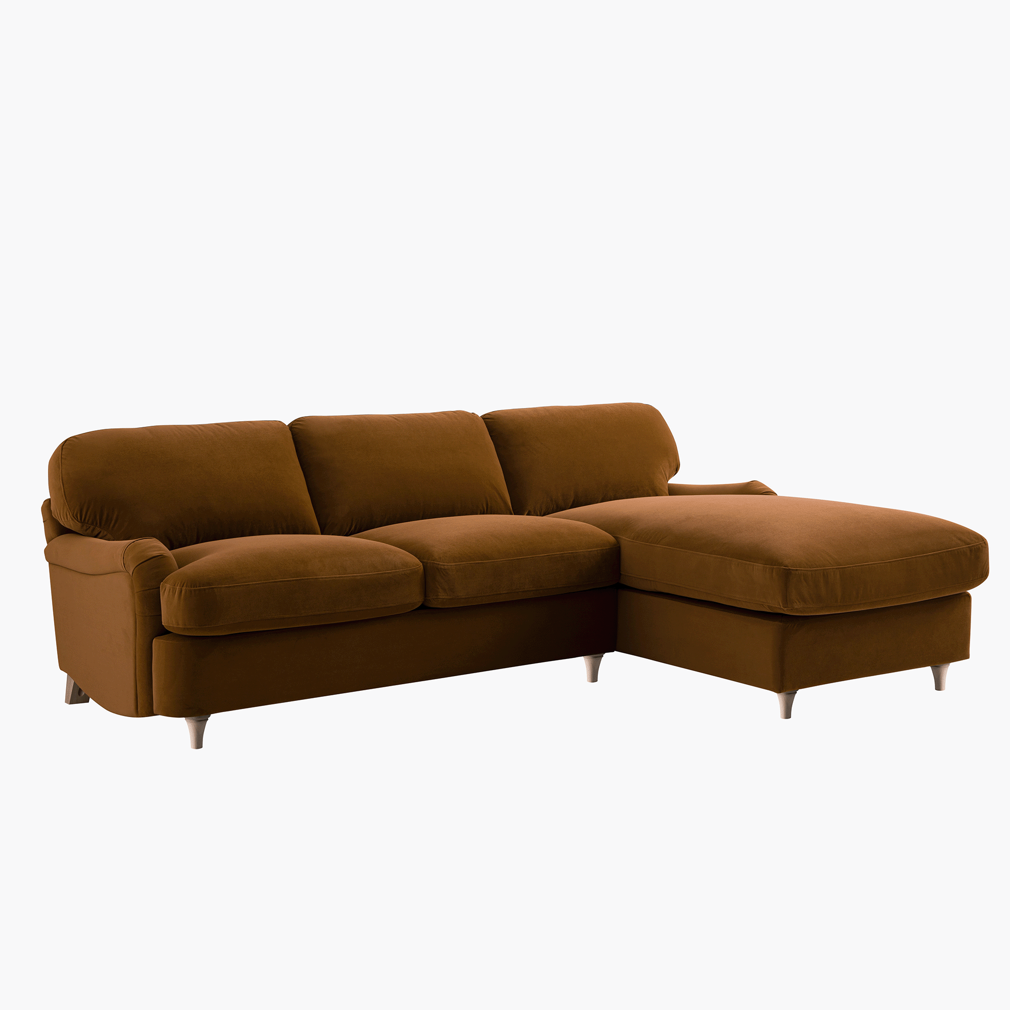 - Upholstered in earthy sumptuous cinnamon colour velvet touch fabric.