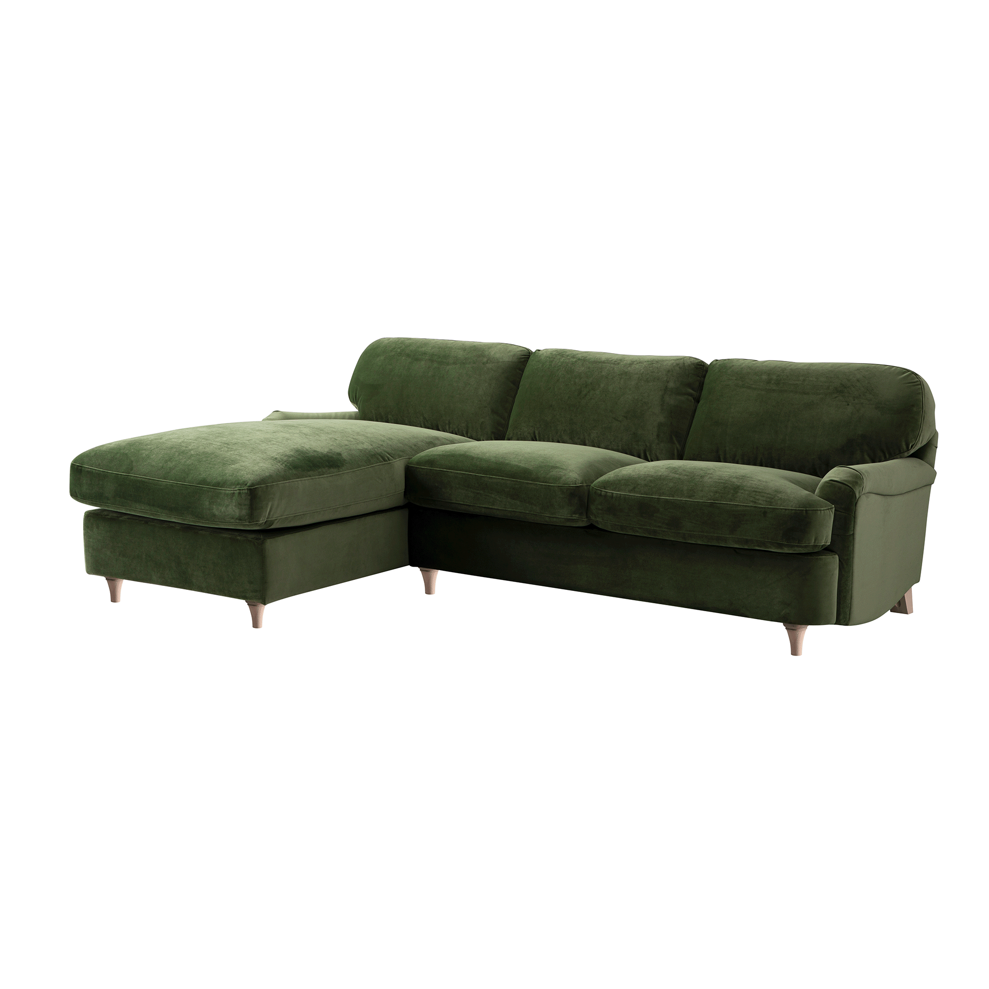 - Complete the look: Pictured with the Daphnis Fern Green Velvet Grande Chaise Sofa Bed is our Maison Cream Floral Quilted Cotton Velvet Bedspread, Margot Taupe Embroidered Scallop 300TC Cotton Percale Duvet Set, Evie Hand Braided Jute Scallop Green Border Rectangular Rug and Richmond Dark Ash Ridged 2-Door Cabinet.