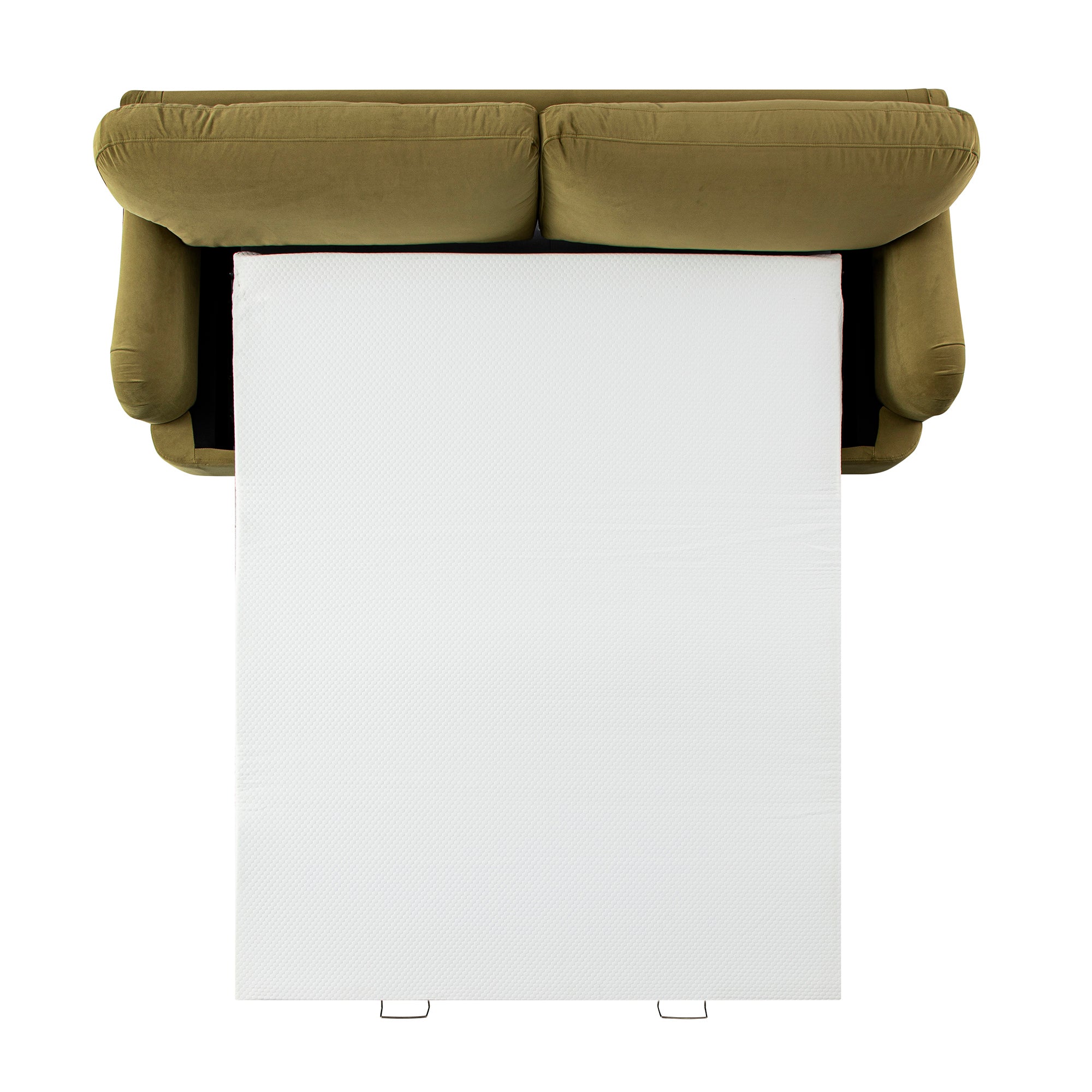 - Complete the look: Pictured with the Daphnis Fudge Velvet Sofa Bed is our Bronte Collection Cotton Patchwork Cushion, Kamala Geometric Handwoven Wool Rug and Izzy Walnut Curved Rattan Chest of 5 Drawers.