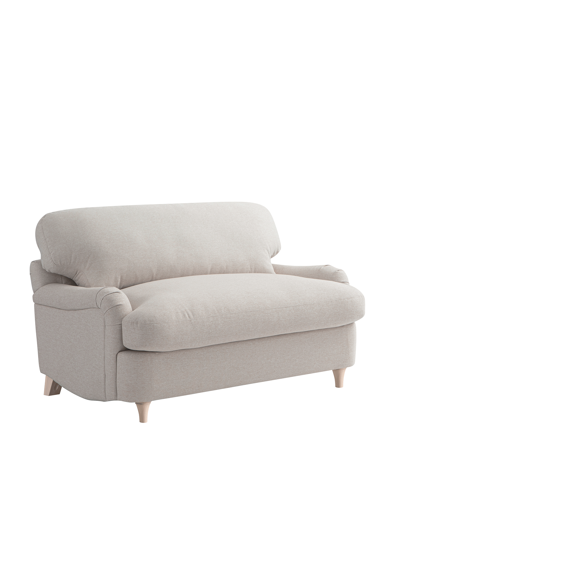 - Upholstered in cosy oatmeal brushed fabric that blends in nicely with any decor