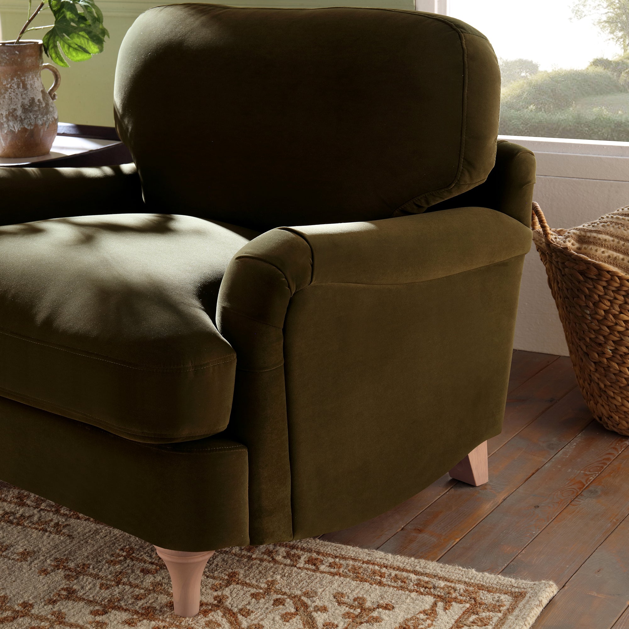 - Complete the look: Pictured with our Daphnis Seaweed 1-Seater Sofa is our Varanasi Traditional Hand Tufted Rug and our Luxe Collection Allegra Cushion