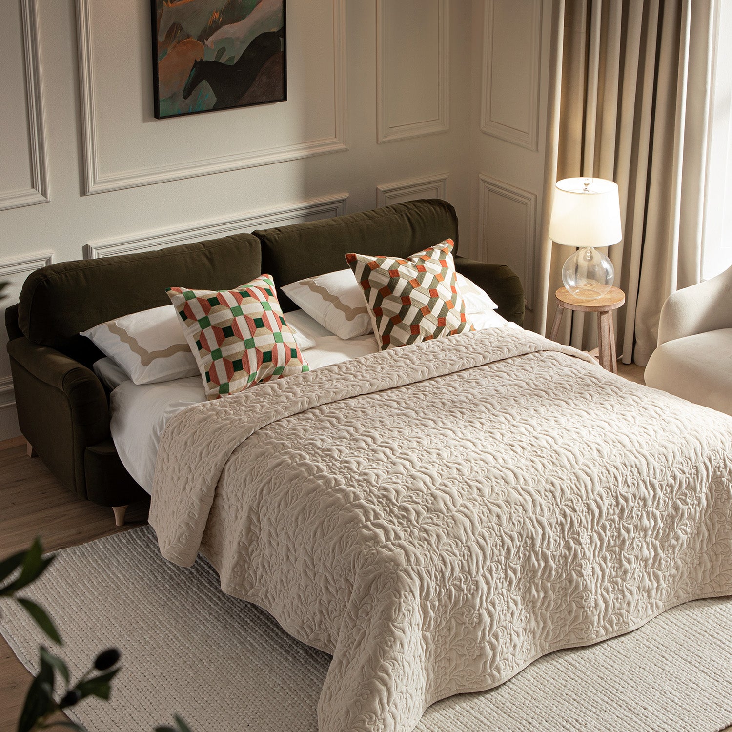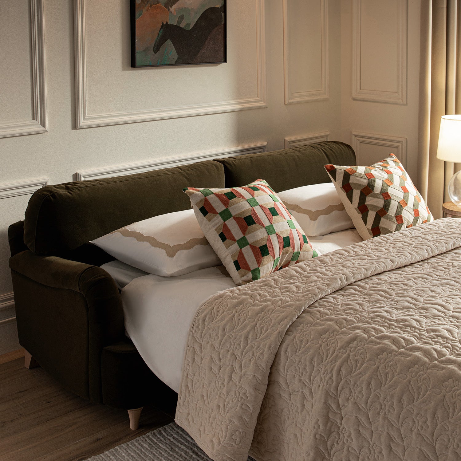 Daphnis Seaweed Velvet Sofa Bed, Large 3-Seater