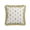 - Made from a high quality linen cotton blend, the cushion features a beautiful olive green floral repeat pattern that adds whimsy to your space and delicately hand embroidered floral touches deepen the classy feel. Further complemented by a charming and lively striped ruffle border that brings a romantic ambience.