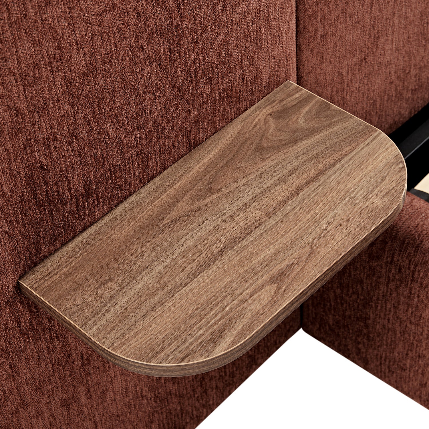 - Upholstered in a richly textured chenille, the deep burnt brick tone brings depth and warmth without overpowering the space.