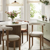 - Crafted from a solid oak frame in a natural finish, our Demeter Dining Chair features rounded structure that brings warmth and quiet strength to the dining space, while the upholstered seat and curved backrest introduce a gentle, tactile contrast.