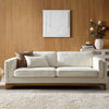 - Designed with track armrests and solid wood base, the sofa features seat cushions composed of springs and foam for a comfortable lounge place