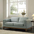 - Designed with track armrests and solid wood base, the sofa features seat cushions composed of springs and foam for a comfortable lounge place
