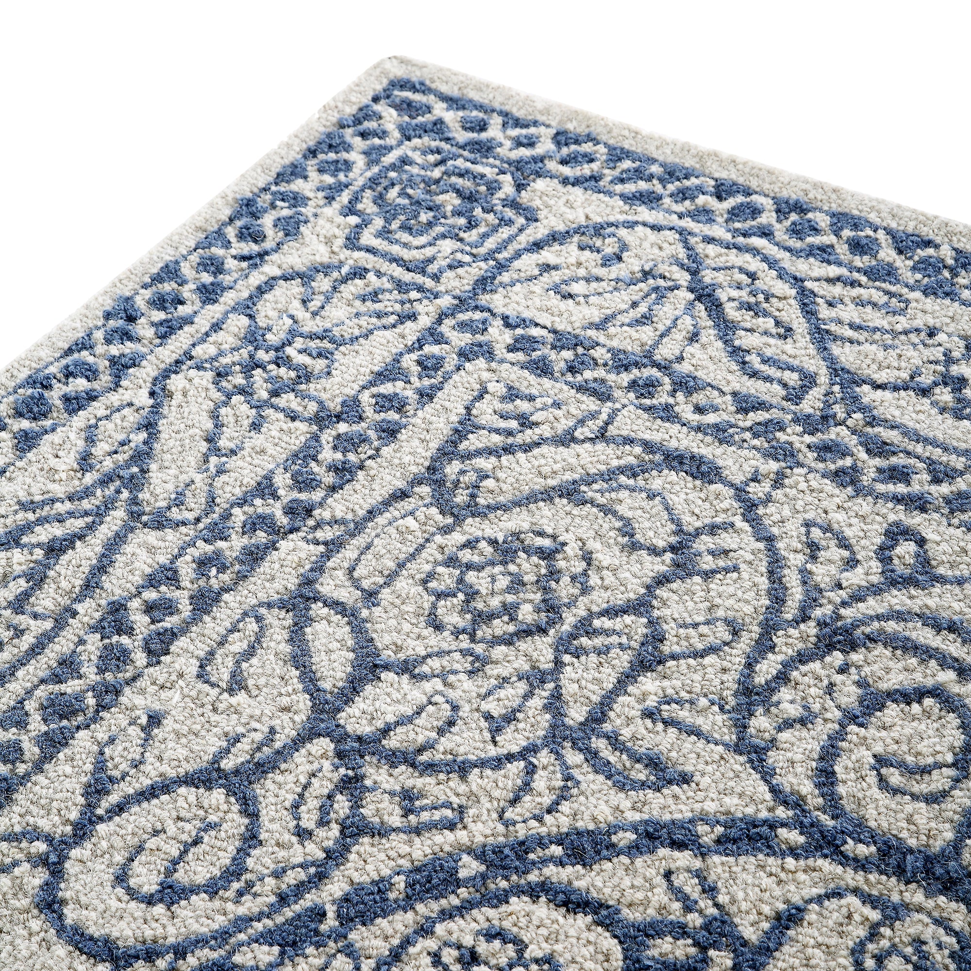 - Crafted from the finest, heavy-weight Indian wool, the Eden rug features an authentic and calming blue and white floral design created using loop construction, giving it an ornate vintage feel. Whilst a lengthy process to produce, the final result is an intricately textured and detailed high quality product.
