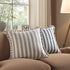 - Complete the look: Pictured with our Edith Reversible Linen Blend Beige Striped Cushion is our Daphnis Camel Velvet Sofa