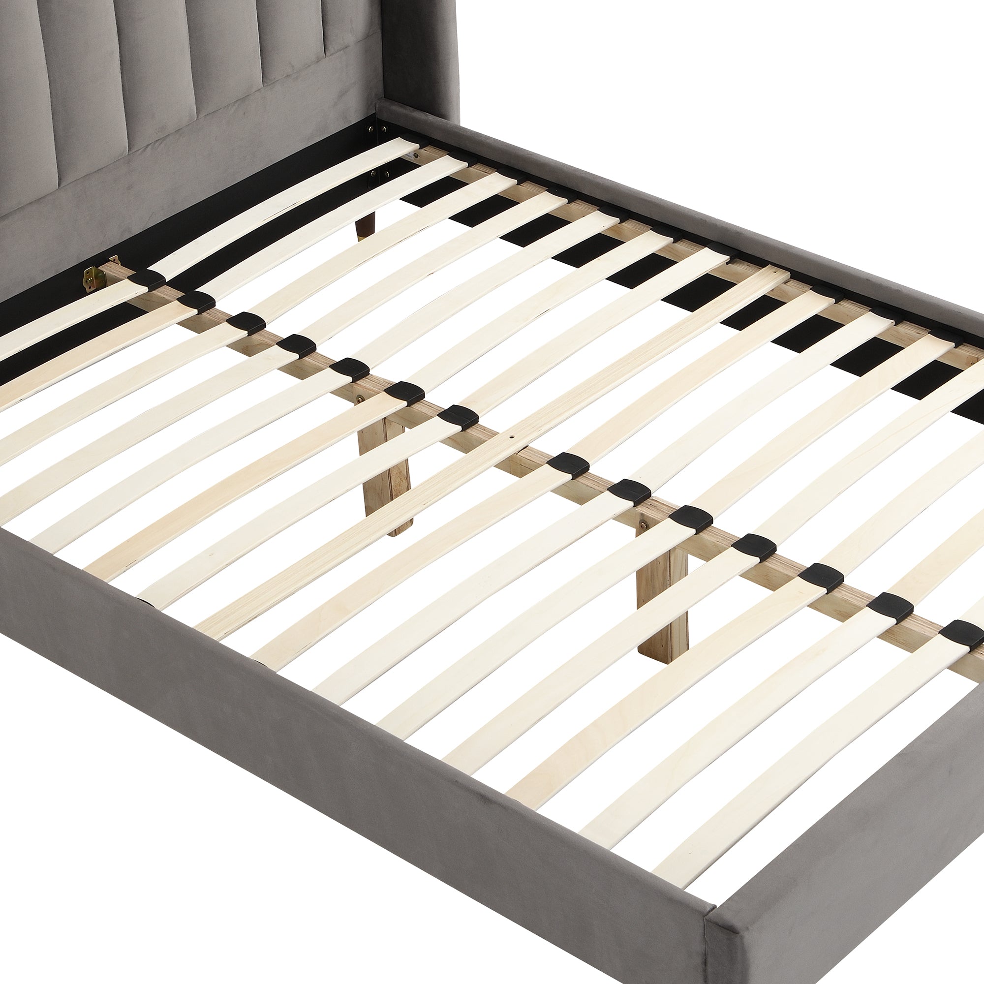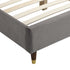 - Upholstered with opulent velvet look fabric, the bed is accented with golden colour tipped wooden legs for a sophisticated look.