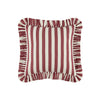 - Made from a high quality linen cotton blend, the cushion features striking scarlet red stripes that feel playful and add whimsy to your space. This is complemented by a charming ruffle border that brings a romantic ambience.