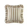 - Made from a high quality linen cotton blend, the cushion features stylish taupe stripes that feel playful and add whimsy to your space. This is complemented by a charming ruffle border that brings a romantic ambience.