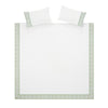 - Fresh and timeless, the Elodie White & Seafoam Green Embroidered Cotton Percale Duvet Set has charm in abundance, bringing feelings of gracefulness and serenity to your bedroom.
