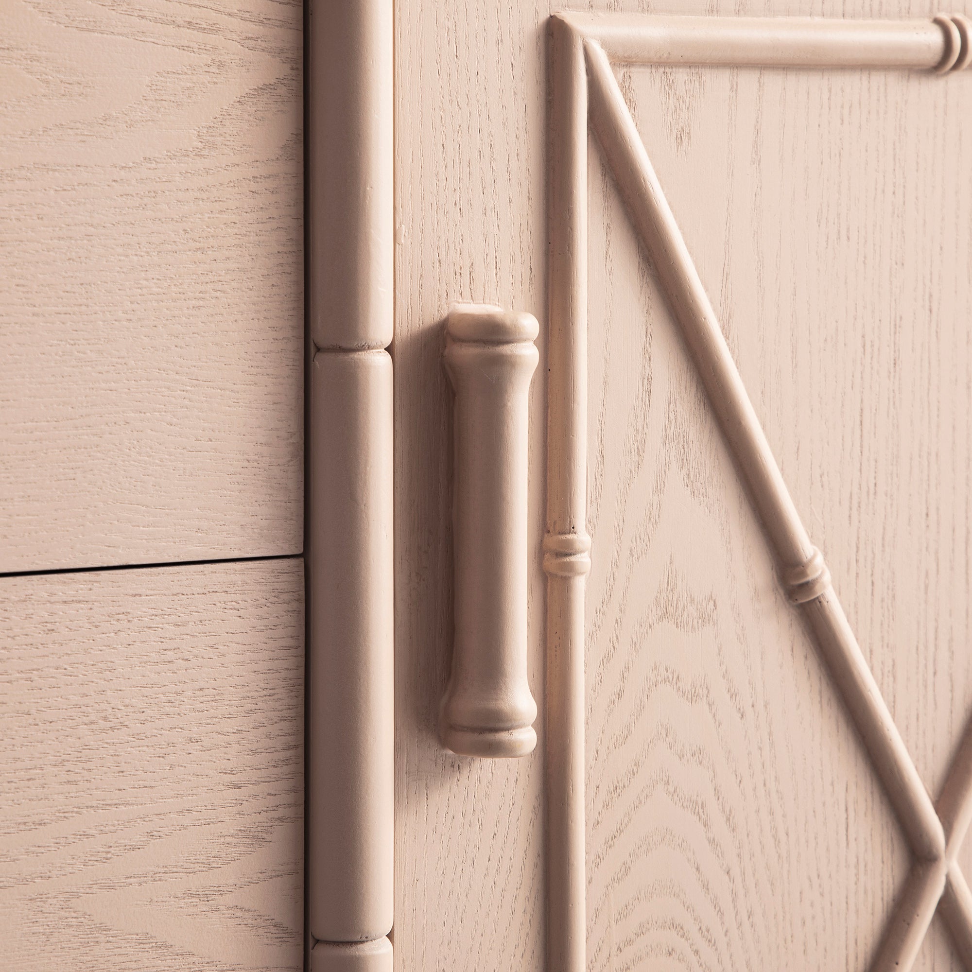 - Each sideboard is hand-brushed with a beautiful nude pink paint with natural undertone that keeps the natural wood grain revealed, therefore each piece is unique due to the natural variation of wood.