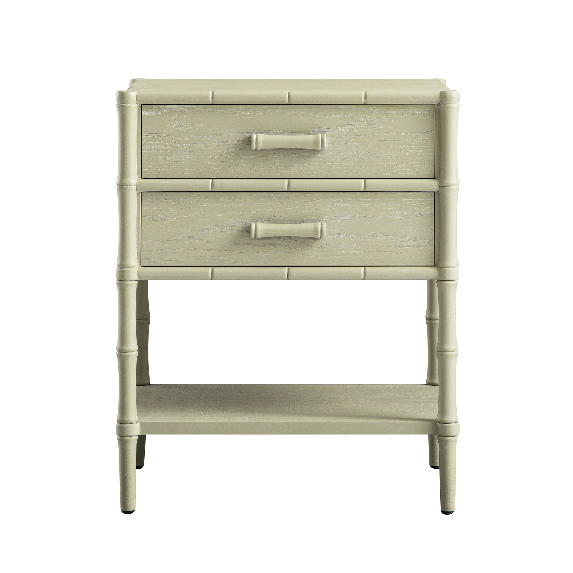 - Complete the look: Pictured with the Elstowe Sage Green Faux Bamboo 2-Drawer Bedside Table is our Egerton Oatmeal Box-Pleat Ottoman Storage Bed and Meadow White Floral Embroidered Cotton Percale Duvet Set.