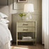 - Two drawers with faux bamboo handles offer ample storage for your essentials, while a full-width bottom shelf adds extra space for books, decorative baskets, or your favourite night-time reads.
